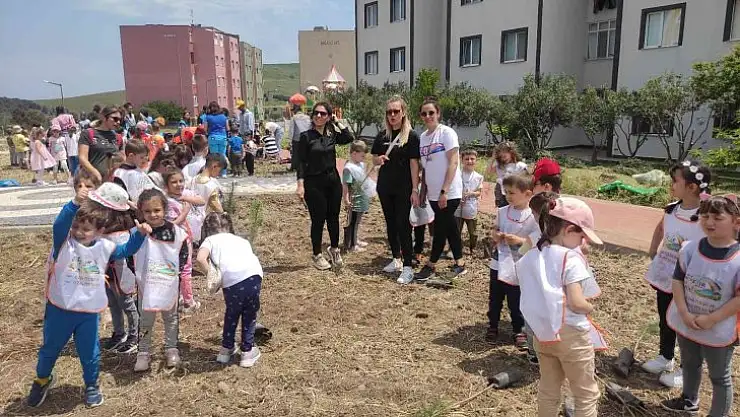 Balıkesir'in Bandırma ilçesinde parka 300 adet fidan toprakla buluştu.