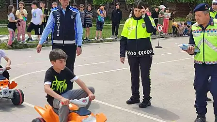 Kütahya'nın Gediz İlçesinde Trafik Haftası etkinlikleri çerçevesinde ilkokulu öğrencilerine uygulamalı trafik eğitimi verildi.