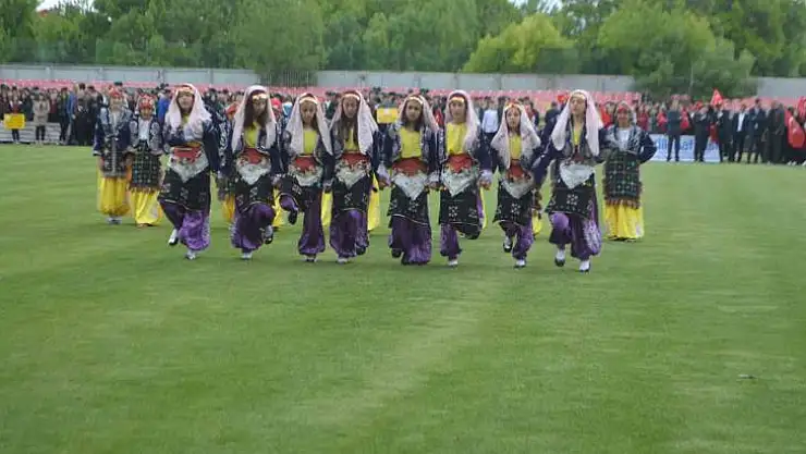 Halk oyunları gösterileri sırasında bir öğrencinin ayağından çıkan ayakkabısını öğretmeni giydirirken, efe kıyafetli kadınlar da törene damgasını vurdu.