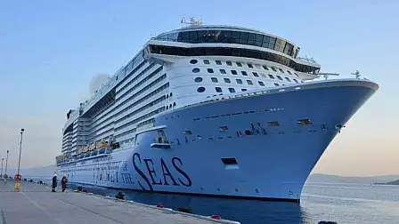 Bahama bandıralı dev kruvaziyer 'Odyssey of the Seas', 3 bin 470 yolcusu ve bin 800 mürettebatı ile Aydın'ın Kuşadası ilçesine ikinci seferini gerçekleştirdi. Ege Port Limanı'na yanaşan 347 metre uzunluğundaki lüks turistik yolcu gemisinden inen turistler halkoyunları ekibi tarafından karşılandı.